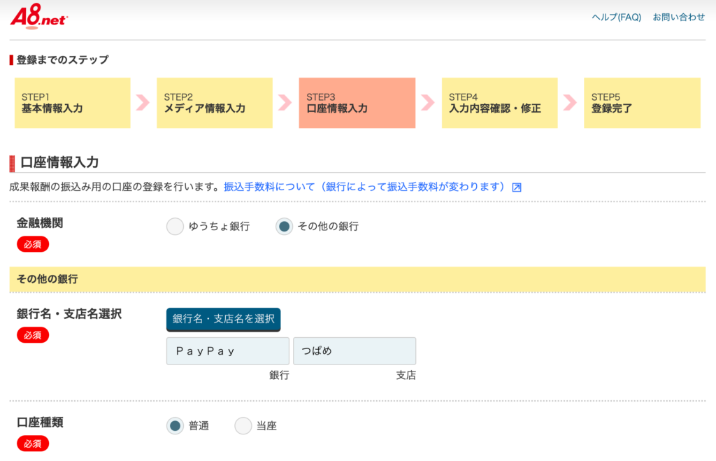 ※ここではブログ用に作ったネットバンクの「PayPay銀行」を選択しています。まだお作りでない方はこちらの記事を参考に作成いただければと思います。専用の口座を作成することをお勧めします!