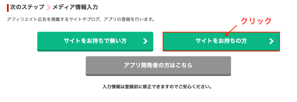 自身のブログを登録するため「サイトをお持ちの方」をクリックします。
