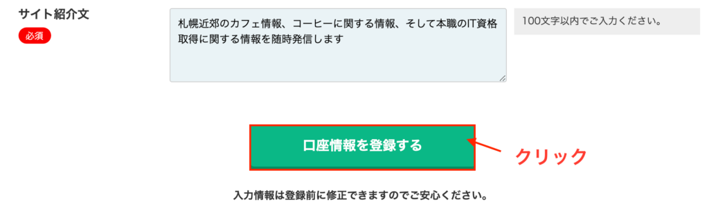 「口座情報を登録する」ボタンをクリックします。