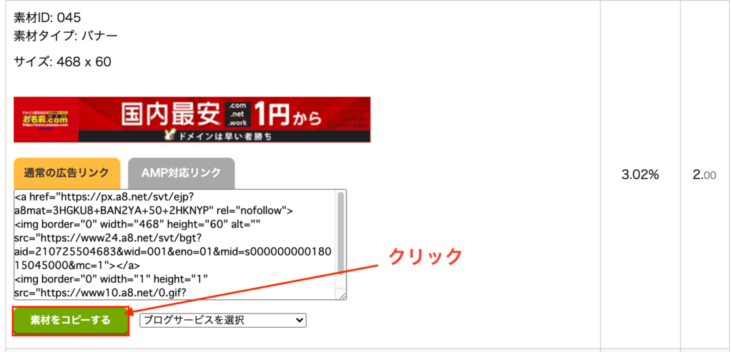 提携された広告リンクをブログの記事に設定する