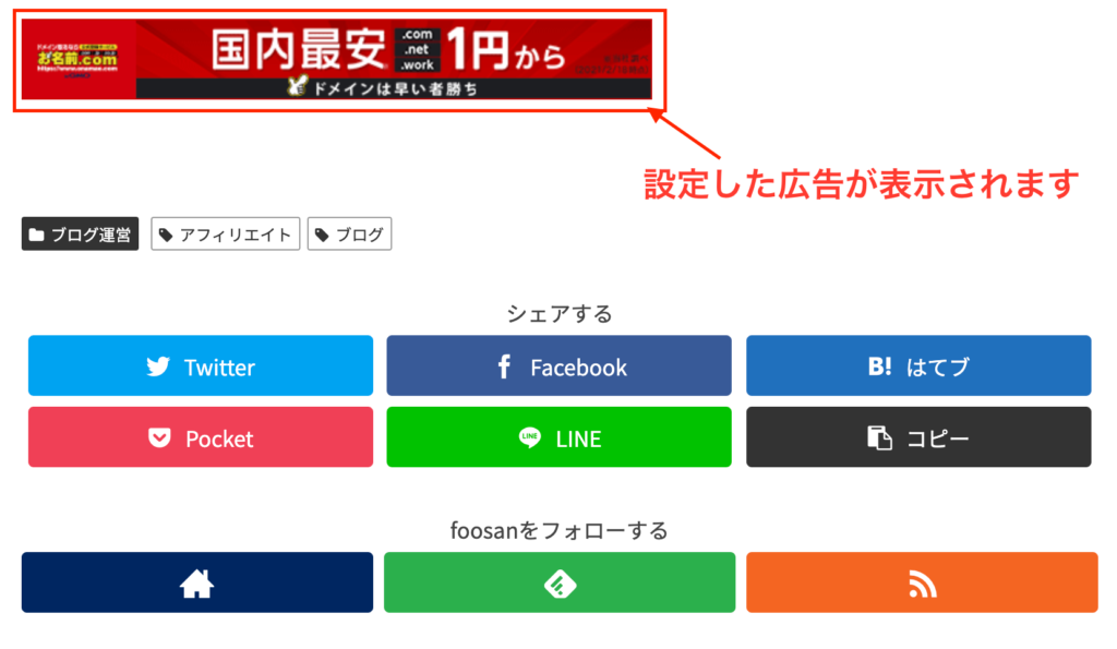 ちなみに↓に広告を設定させていただきました。ドメインをご検討の方はこちらから!!