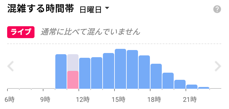 Googleの混雑状況を見るとやはり通常はお昼前くらいからの時間帯から15時くらいまでがピークですね。
