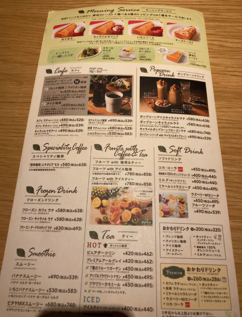 どちらが先かわかりませんがコメダ珈琲と似てるサービスと価格帯かなという気がします。