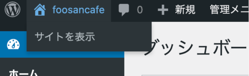 管理画面の左上の方にサイト名がありますのでそこから「サイトを表示」ボタンをクリックします。